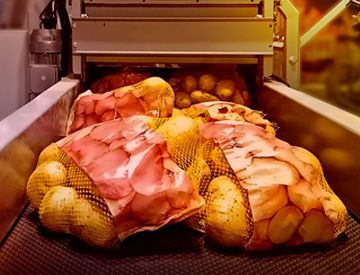 Комбинированное полотно — это готовый упаковочный материал из предварительно склеенной ленты и сетки для автоматической фасовки овощей и фруктов в упаковку премиум-класса типа «Домик», особенно популярна для мытого картофеля. Наличие сетки обеспечивает вентиляцию продукта, а широкая лента позволяет сделать качественный брендинг и красивый дизайн.